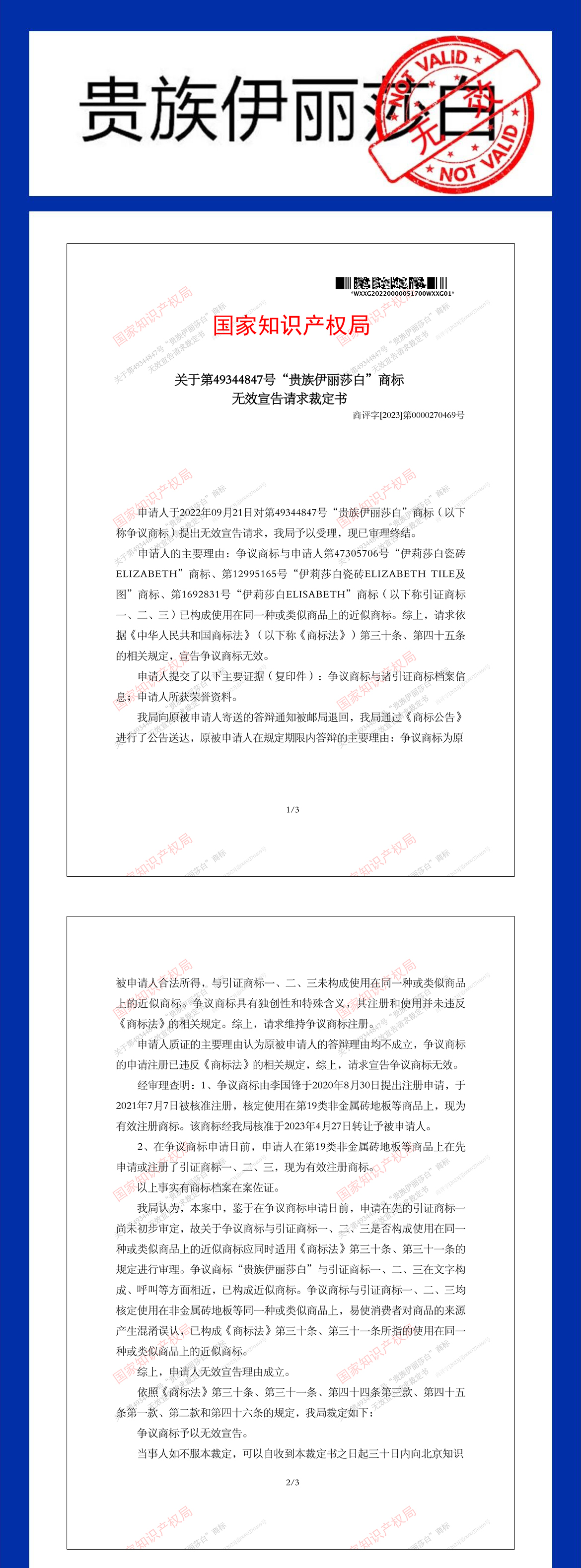【維權打假】定了!伊莉莎白瓷磚重拳出擊打假無效商標案勝訴!